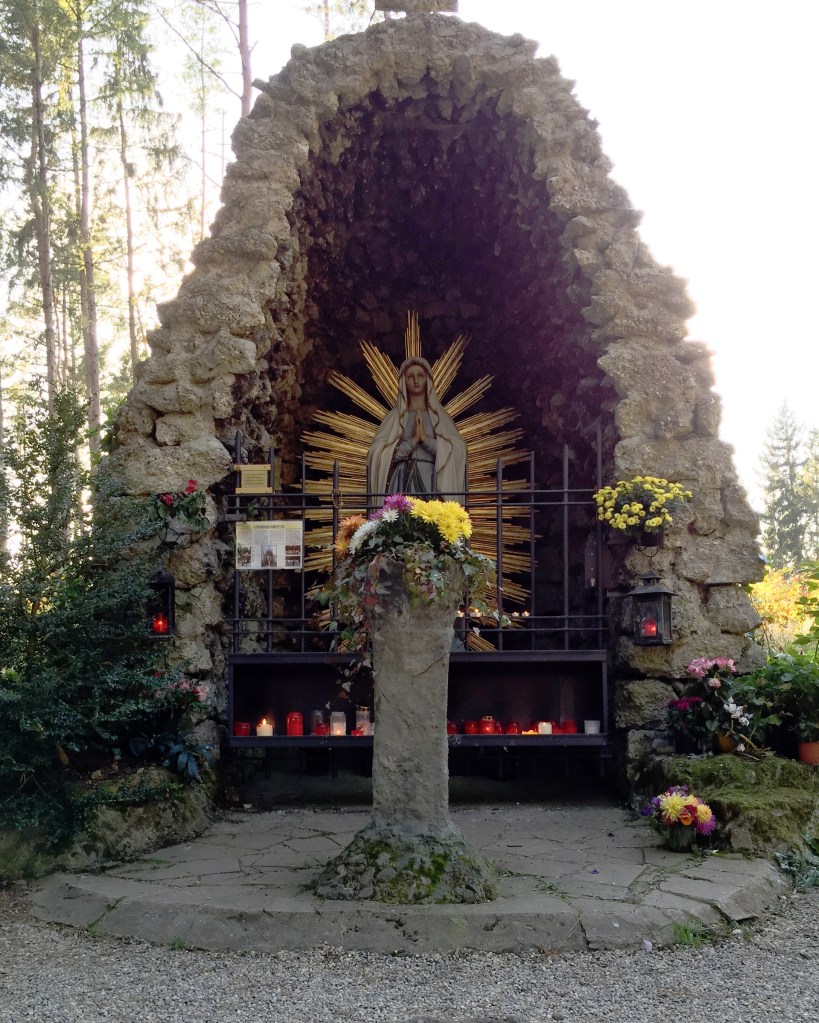 26.06.1932 wird der Platz von Kardinal Faulhaber eingeweiht und erhält den Namen “Kardinal Faulhaber — Walderholungsplatz”. Es wurde auch eine Marienstatue aufgestellt, die dann später in einer “Lourdes-Grotte” Aufnahme fand. Im Krieg wurde die Anlage, bis auf die Grotte zerstört:
